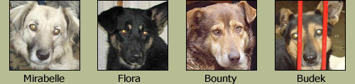 Mirabelle, Flora, Bounty og Budek er blandt nogle af de nye hunde der vil findes egnede til adoption her på siden. Disse 4 er netop kommet på listen og de kan ses under "hunde til Adoption" nederste billedrække. |