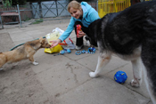 Vi takker også for alle donationerne vi modtager. Hundene bliver så glade når vi kommer ind til dem med godbidder, foder, tæpper og legetøj. De hopper og gør og logrer med halerne.