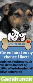 Gadehunde.dk samarbejder med en online dyrehandel, der hedder PetDreams.dk med bl.a. lidt økonomisk støtte, som du kan hjælpe med at spare op til gennem en ordre hos PetDreams. Hver gang du køber på deres hjemmeside gennem et banner dertil her fra Gadehunde.dk, støtter du Gadehunde med 10% af ordrens værdi. PetDreams kan du læse mere om her Klik på banneret for at komme til PetDreams hjemmeside |