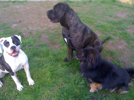 Den lille polak her er en vandhund, (Cezar/Simba) Vi havde ham med til stranden forleden aften, og han vadede lige ud og svømmede rundt som om han aldrig har bestilt andet. Han er meget lydhør. Når vi skal ud og køre springer han glad op i bilen. Det går stadig fint, og han er faldet godt til. ;-) Vedhæfter lidt billeder. Den hvide og brune Am-bulldog er Bailey naboens hund som gerne kommer ind og leger. Den store brune er Tulle og de ligger og sover sammen om natten.God sommer... Hilsen Tanja