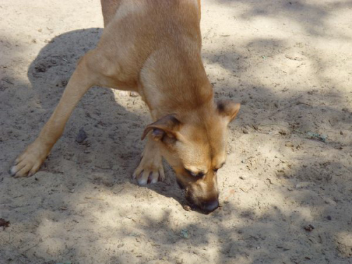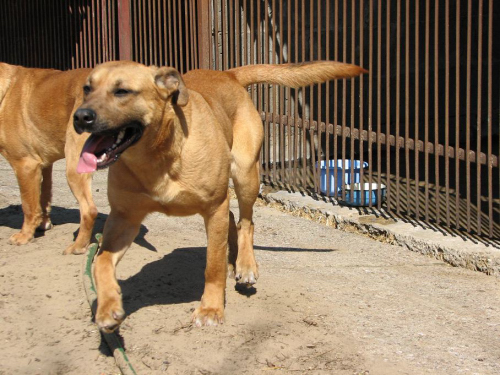 sammen med en anden hund som ligner ham meget. Man kender ikke deres fortid.Fred er en meget åben hund som er klar på nye venskaber. Han er ca. 1 år gammel. Han er energisk, legesyg og menneskeglad. Hans liv på internatet begrænser ham meget. Han er en aktiv hund som elsker at løbe rundt .Vi håber på at Fred meget hurtigt finder et hjem, da det ville være sørgeligt hvis han mistede modet.