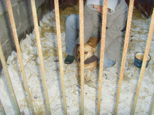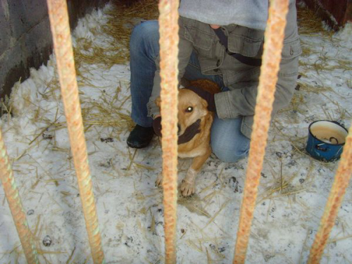 Hun blev flyttet ind til en boks men andre hunde og det har hjulpet