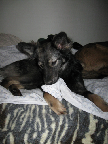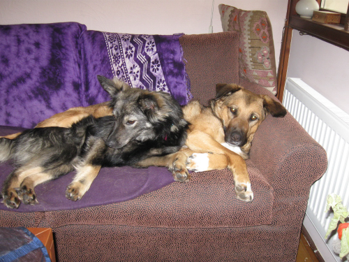 Silke er ikke ligefrem forsigtig i sin leg, hun bider sig godt fast i halsen på Nougat og rusker hende og Nougat finder sig i alt fra den lilles side.De er meget beskyttende overfor hinanden og foretrækker tit at lege med hinanden også når der er andre hunde at lege med.