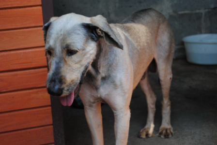 Man ved ikke hvordan hans fortid har været. Hans pels er meget forsømt.