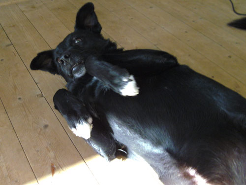 08.12.07 Tänzer eller Danser som han også kaldes er fuld af energi og er enormt glad hele tiden. Han er altid klar til en lang gåtur, som han elsker så højt. Han er også en god springer, han kan hoppe 1,3 meter for det er lige hvad plejemors havelåge er i højden og han har da været uden for haven et par gange, men hver gang sad han pænt og ventede på at komme ind igen, for væk ville han ikke og det er lidt typisk hunde at de så ikke kan finde ud af at komme tilbage igen på samme måde som de kom ud :O) Danser elsker at blive nusset og kælet med, han nyder det med lange suk. Så en rigtig lille puttehund. Han bryder sig ikke om katte. Han vil kunne dele et hjem med en hunhund, men hanhunde er måske ikke helt sikkert. På nuværende tidpunkt anbefales detihvertfald ikke, men hunde kan jo ændre sig meget alt efter omgivelserne. Han laver ellers ingen numre ud over en gang imellem at grave huller i græsplænen, men han får at vide at det ikke er så populært. Udover det er han en pragtfuld og kærlig hund, som vil gøre det godt som familiehund.