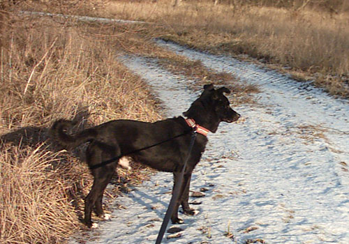 24.01.08 Danzer/Tänzer har det Så dejligt i sit pleje-hjem, han ælsker at gå lange ture og når han først er kommet ud er han fuldstændigt i et med naturen. Han er meget årvågen og dirrer nærmest af kådhed. Han kan godt li' at lade som om han er på jagt, og lytter efter mus. Han søger meget og går energisk frem. En meget spændende hund, med gode muligheder i. Danzer er en pragtfuld hund, og det har gavnet ham virkeligt meget at komme væk fra buret på internatet - det har åbnet hans sind op igen.
