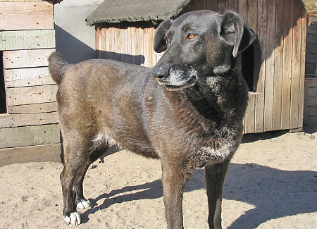 HASTER: Jagna er blevet ældre og mere svag i det. Hun har sværere ved at gå og i det hele taget klare sig. Før i tiden havde hun det udmærket på internatet, men nu hvor hun er nået de 8 år og lever i et hårdt miljø, så tærer det kraftigt på hende. Jagna har ondt i sine ben og ryg, og de tror hun måske har lidt begyndende gigt. Hun skal til røngten og helst behandles med varme. Vi vil hjælpe stakkels Jagna med et plejeophold, og det vil selvfølgelig være endnu bedre hvis hun bliver adopteret en dag. Men lige nu kan vi hjælpe hende ved at tage hende væk fra det golde miljø og ind i et varmt hjem.