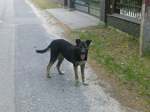 Smukke Oscar er bare sådan en dejlig fyr. Han blev d. 9. maj set gående lidt ubeslutsomt rundt på en vej og det blev ganske tydeligt for Ewa og Co. at han var blevet efterladt i området af sikkert en tidligere ejer. Ewa forhørte sig med os om vi ville hjælpe ham og hun fik straks accept på dette. Men da Ewa ville hente ham var han ikke lige at se, men en beboer på vejen havde set ham stå og spise gamle aviser ved en container i nærheden. Ewa søgte efter ham og fandt ham kort efter. Der var ingen problemer med at få fat i ham for han er utrolig tillidsfuld og kaster sig ned for at få kæl og nus. Ewa tog ham med til en veninde hvor han kunne bo de første par dage inden vi fandt et hotel til ham og nu er han hos Malgosia og Bartek.