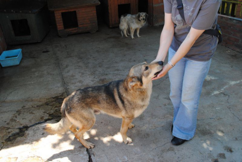 Azor bor i "hårde" vilkår. Han er sammen med "vilde" hunde som kommer fra alle mulige steder og de er ikke samarbejdsvillige. De fleste af dem er ikke egnet til adoption. . Selv om Azor er sammen med den slags hunde har han ikke forandret sig. Når han ser et menneske er han ellevild. Vi leger med ham og giver ham godbidder så han får et sundt forhold til mennesker. Det bedste ville være hvis han kunne komme et sted hen hvor der var en tæve som også ville lege med ham.