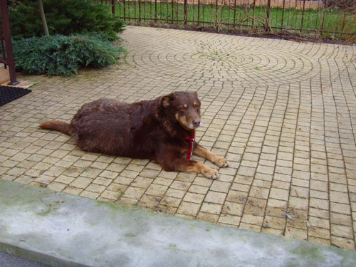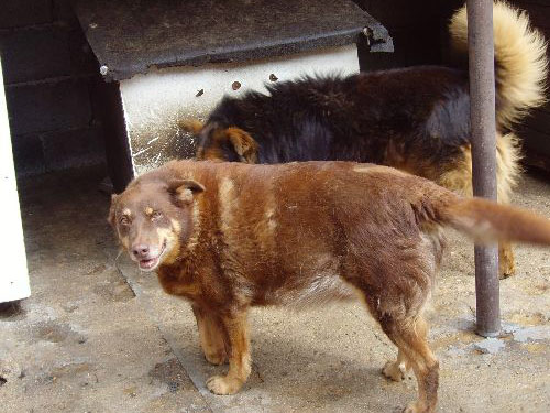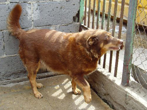 Hanhunden som hun ankom til internatet med fik hjem for 2 år siden, men Coco er der stadig, for der er ingen der er interesseret i en lille tyk hund med et lille handicap, som Coco. Hendes handicap er at hendes ene forpote har en smule forvredet stilling - dette skyldes at hun engang da hun var ude at gå tur blev påkørt af en bil. Poten forvolder ingen smerte eller gener og Coco kan gå, stå løbe som alle andre hunde uden problemer.