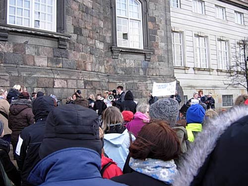 Folk var glade og hyggede sig på trods af kulden - og der var blevet skrevet en sang til demonstrationen, som folk udførte flot selvom der var god vind i ganen, når man stod midt på Christianborgs slotplads. Du kan se(selv synge) sangen HER.