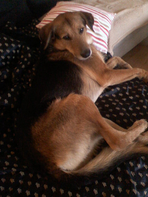 Dejlige skønne Milek har fået hjem hos Rita . Han var bange da han kom hjem men se her ikke engang 1 døgn efter hjemkomsten - han har det som blommen i et æg og han har fundet sin bedste ven Gucci. Prins Milek slænger sig i sofaen - endelig har han fået sit helt eget hjem. Stort tillykke til Rita og Milekdrengen