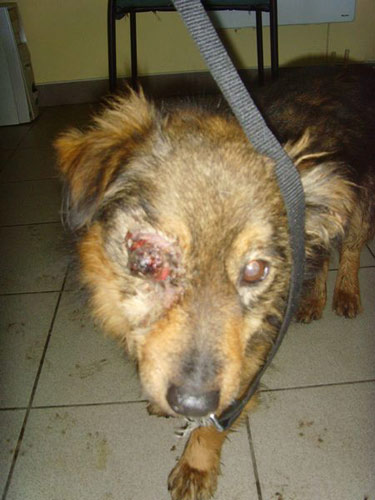 Vi har ikke så meget om Duffy lige nu, kun at han øjeblikkeligt kom ind på klinikken og modtog akuthjælp. Han skal videre i pleje og endelig ikke på internatet i den tilstand, så vi har derfor også sat Duffy på som hasterhund, hvor man kan fjernadoptere/sponsere hans plejeophold. Vi har en smule i førstehjælpskassen og der er sendt penge til de foreløbige udgifter. Vi håber der vil støde lidt bidrag til, da dyrlægehjælp jo kræver en del midler.