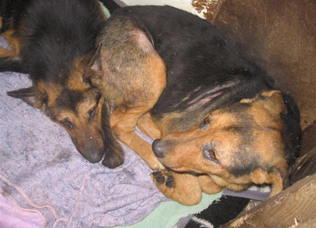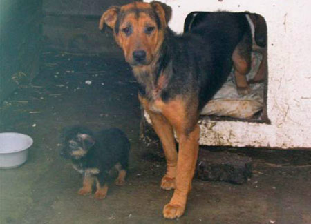En dejlig ung schaefer hanhund, Chigo, blev afleveret på internatet af sin tidligere ejer .- han havde pludseligt ikke brug for ham længere, men hunden havde stadig brug for ham. Han blev først sat alene ind i et bur, men ikke længe efter fik han selskab af en hunhund, Nanna, og de fik naturligt nok hvalpe. Men internatet kunne godt se problemet med 10 hvalpe, så de aflivede 9 af dem lige med det samme og lod Nanna beholde 1, Kiko, som hun kunne dige og passe på.