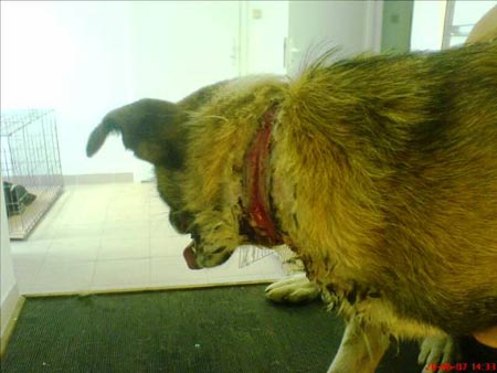 08.08.07: Luna har fået det meget bedre nu efter behandlingen. Hendes grimme sår hele vejen rundt om halsen er helet godt op og skal bare styrkes, så hun kan få lidt pels tilbage på halsen. Vi er meget glade for den hjælp vi får ind, det er dejligt med fælles indsats at kunne være i stand til at give en ellers fortabt hund en ekstra chance.