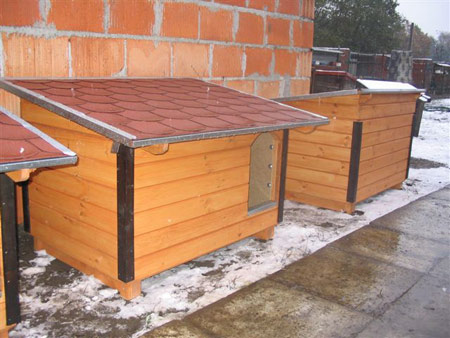 Nogle hundehuse er de såkaldte dobbelthuse, som er beregnet til 2 hunde ( på den måde kan de også bedre holde varmen om vinteren ).