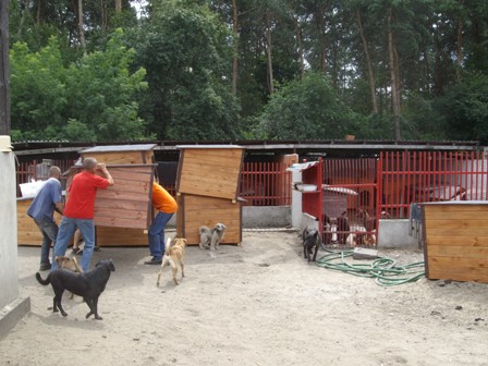 07.12.08 : hele 34 nye hundehuse er blevet leveret og taget hurtigt i brug på internatet. Der blev købt ind for omtrendt 38.000 kr ( inkl. polsk moms 22% )- dette kunne kun lade sig gøre netop fordi der findes nogle rigtigt søde og rare mennesker, som gerne vil støtte med lidt økonomisk assistance til nye hundehuse og dermed væsentlige forbedringer for hundene på det store, men fattige internat. Speciel tak til Olivers Petfood og Rude Biopatklinik.