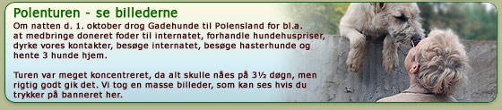 Vi vil her bringe lidt forskellige historier og beretninger om ture til polen og andre begivenheder i forbindelse med Gadehunde.