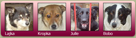 4 nye hunde har fundet sin vej til vores adoptionsliste, hvor vi selvfølgelig håber på at de vil øge deres chancer for nye, faste hjem. De er hver især nogle helt specielle hunde, med hver deres særpræg. Julle er en lille sort knold, med fart i rumpen, Kropka er en rolig lille hunhund som vil elske dig for altid, Bobobassen er bare noget af det skønneste og ham kan man ikke lade være med at smile af og til - og smukke Lajka, med sit yndige ansigt er bare så dejlig. SE dem her ( nederst ).