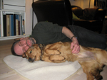 Søde Solo er rigtig glad for at komme væk fra internatet og i kærlig pleje . Solo hygger sig med dejlige Funia