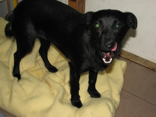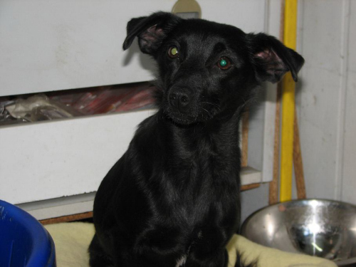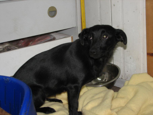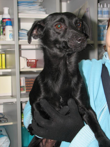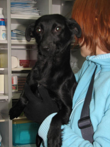 Hun blev fundet i et hul i skoven tæt på internatet sammen med nogle hvalpe (desværre overlevede de ikke alle sammen.)