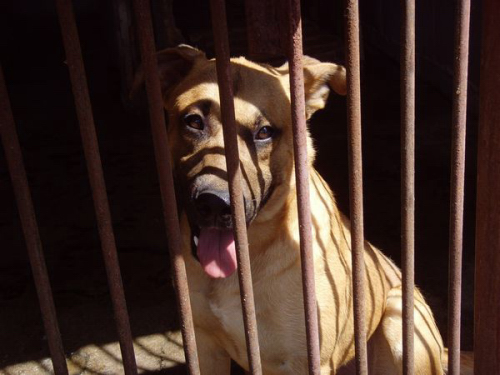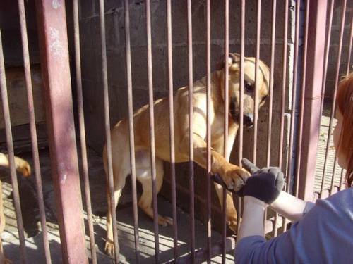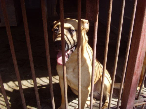 sammen med en anden hund som ligner ham meget. Man kender ikke deres fortid.Fred er en meget åben hund som er klar på nye venskaber. Han er ca. 1 år gammel. Han er energisk, legesyg og menneskeglad. Hans liv på internatet begrænser ham meget. Han er en aktiv hund som elsker at løbe rundt .Vi håber på at Fred meget hurtigt finder et hjem, da det ville være sørgeligt hvis han mistede modet.