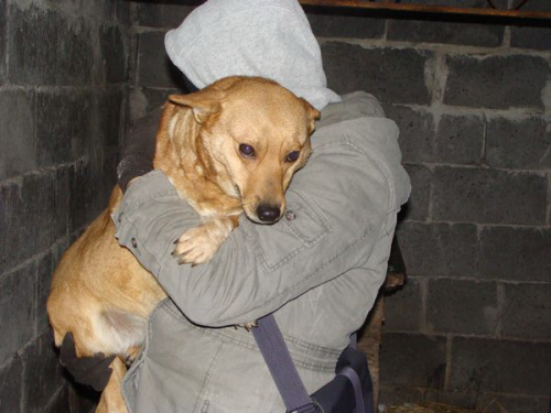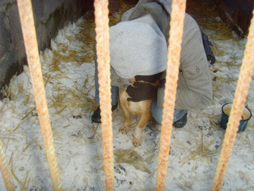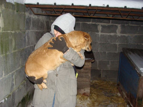 Hun blev flyttet ind til en boks men andre hunde og det har hjulpet