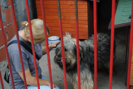 Juli 2010 - Han stoler mere og mere på mennesket. Han er ligefrem begyndt at gø lidt for at få opmærksomhed, når han ser de frivillige piger i nærheden.