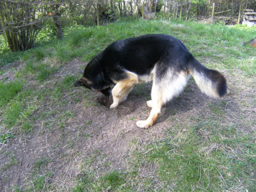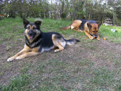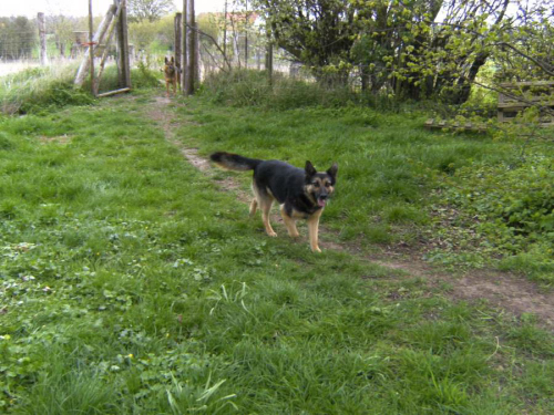 De første 3 uger spiste Olga ca. 3 gange så meget som de andre hundebasser. Hun er vokset, både i størrelse og tykkelse.Hun har mindst taget 5 kilo på og det har pyntet på den lille frøken Olga. Der gik ikke mange dage før hun syntes, det var dejligt at blive kælet for og der midt i sengen var rart at ligge om natten. På den korte tid ,der er gået, har Olga fundet sit jeg frem fra dybet. Hun er lykkelig. Vi kan næsten høre hende råbe jubiiiiiii, når hun kommer styrtende over marken. Den sidste uges tid er hun begyndt at lege meget med Ditte og Susi. Det er helt vidunderligt, at se dem tosse rundt, falde over hinanden og som på et af billederne, bide hinanden kærligt i benene. Hun er faldet så godt til her hos os. Jeg beundrer alle mine andre hunde for, at have taget så godt imod Olga. De har givet hende lov til næsten alt, ja, selv nærmest at tage maden ud af munden på dem. Olga går så fint i snor og lyder sit navn....næsten.Vi er lykkelige for denne skønne, vidunderlige pige.
