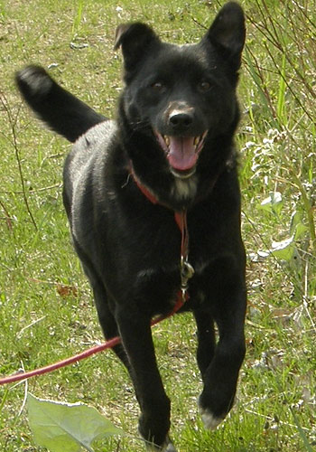 08.12.07 Tänzer eller Danser som han også kaldes er fuld af energi og er enormt glad hele tiden. Han er altid klar til en lang gåtur, som han elsker så højt. Han er også en god springer, han kan hoppe 1,3 meter for det er lige hvad plejemors havelåge er i højden og han har da været uden for haven et par gange, men hver gang sad han pænt og ventede på at komme ind igen, for væk ville han ikke og det er lidt typisk hunde at de så ikke kan finde ud af at komme tilbage igen på samme måde som de kom ud :O) Danser elsker at blive nusset og kælet med, han nyder det med lange suk. Så en rigtig lille puttehund. Han bryder sig ikke om katte. Han vil kunne dele et hjem med en hunhund, men hanhunde er måske ikke helt sikkert. På nuværende tidpunkt anbefales detihvertfald ikke, men hunde kan jo ændre sig meget alt efter omgivelserne. Han laver ellers ingen numre ud over en gang imellem at grave huller i græsplænen, men han får at vide at det ikke er så populært. Udover det er han en pragtfuld og kærlig hund, som vil gøre det godt som familiehund.