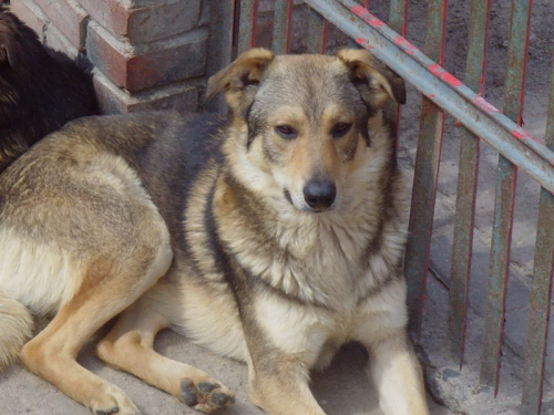 Azor bor i "hårde" vilkår. Han er sammen med "vilde" hunde som kommer fra alle mulige steder og de er ikke samarbejdsvillige. De fleste af dem er ikke egnet til adoption. . Selv om Azor er sammen med den slags hunde har han ikke forandret sig. Når han ser et menneske er han ellevild. Vi leger med ham og giver ham godbidder så han får et sundt forhold til mennesker. Det bedste ville være hvis han kunne komme et sted hen hvor der var en tæve som også ville lege med ham.