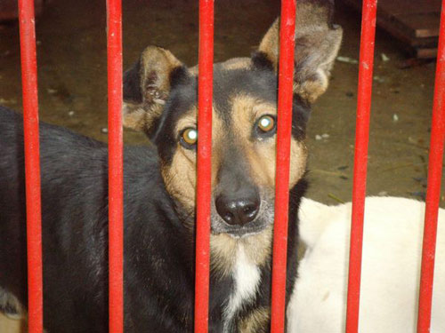 Der var en dag hvor der stod en lille forsagt vovse - Budek og havde brug for hjælp. Man kunne se på ham at han var dødsens skræmt og hans øjne bad om ikke at gøre ham fortræd. Pigerne tog ham med ind. Han kunne ikke forstå hvad der skete og blev meget forvirret. Den første uge kom han slet ikke ud fra sit hundehus. Han var bange, spiste ikke, drak ikke.
