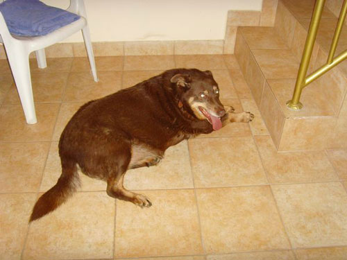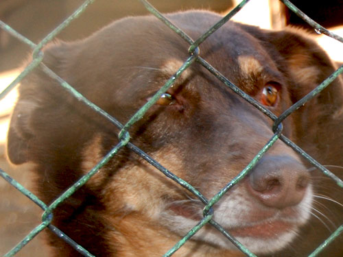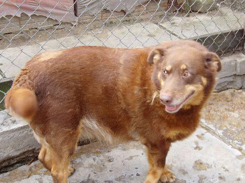 Hanhunden som hun ankom til internatet med fik hjem for 2 år siden, men Coco er der stadig, for der er ingen der er interesseret i en lille tyk hund med et lille handicap, som Coco. Hendes handicap er at hendes ene forpote har en smule forvredet stilling - dette skyldes at hun engang da hun var ude at gå tur blev påkørt af en bil. Poten forvolder ingen smerte eller gener og Coco kan gå, stå løbe som alle andre hunde uden problemer.