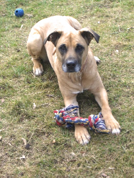 Hun følger os i tykt og tyndt, næsten lidt for meget engang imellem, folk tror vi leger kongens efterfølger. Men selvom man er ved at blive vanvittig nogen gange, så kan man jo ikke stå for hende. Hun er ikke så god til andre hunde endnu, specielt ikke hun hunde dem kan hun simpelthen ikke fordrage. En enkelt gang for hun lige i flæsket på en lille tæve, men der skete heldigvis ikke noget. Nu går vi pænt uden om når hun møder andre hunde på gaden.