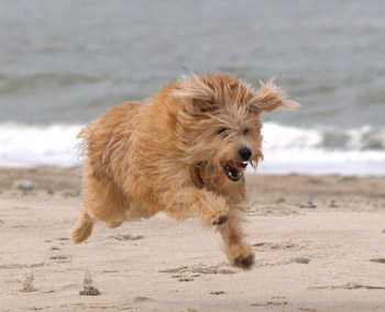 Jeg vedlægger lige mit favoritbillede af ham. Det er fra påskeferien. Speedy var en tur ved Vesterhavet, og som du kan se, så kan han godt lide at løbe lidt løs... Han kan simpelthen løbe som en hest. Så navnet Speedy passer perfekt til ham. :o)