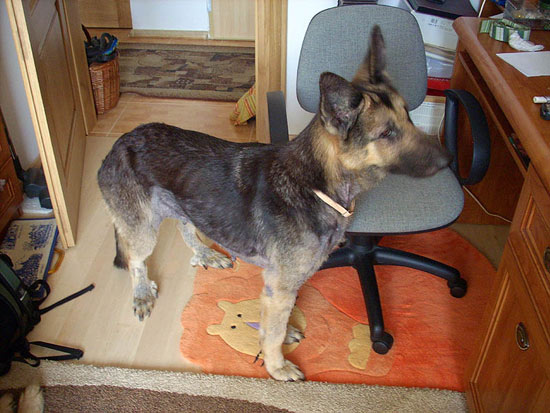 Som det kan ses har Parszywka stadig problemer med sin hudsygdom, men hun ser meget bedre ud nu end for blot 2 år siden. Vi håber at hun med nyt hjem og masser af omsorg måske kan gå hen og blive helt rask.