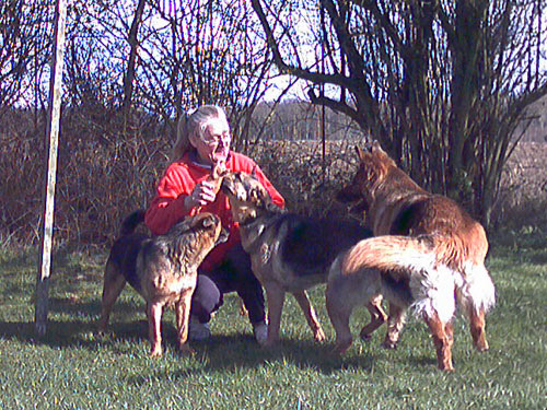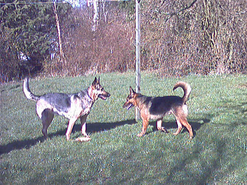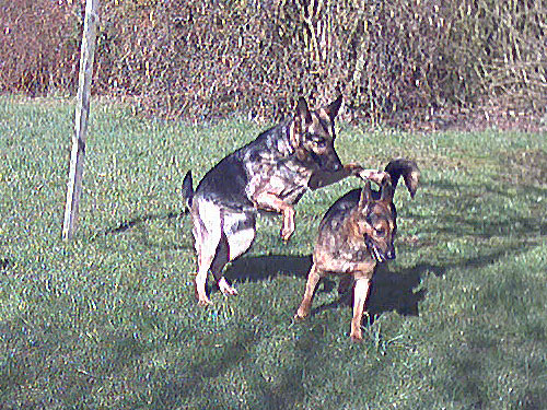 Skønne Remek som nu hedder Balder er kommet hjem til Bente i Rude. Her trives han på bedste vis med sine 2 nye schæfersøstre.