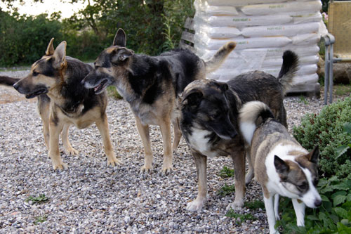 Første møde med flokken gik over al forventning, faktisk gik det så godt at han efter en time kunne ligge ned og sove sammen med de andre og få mad sammen lidt senere. De to gamle hanner i flokken har taget utroligt godt imod ham, også her meget bedre end forventet. Første nat fik han i blinde væltet et tørrestativ, men der er også temmeligt mørkt ude på landet, når først lyset er slukket :o)