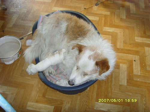 Snoopy her er lige kommet ind i akut pleje, da Ewa og Co. fandt Snoopy efter han var blevet påkørt af en bil. han er blevet tilset og behandlet hos dyrlægen, men skal være under opsyn og skal have yderligere behandlinger. Vi håber med hjælp udefra, at vi kan give den nødvendige hjælp der skal til, så Snoopy kan blive rask og rørig igen og engang blive klar til adoption.