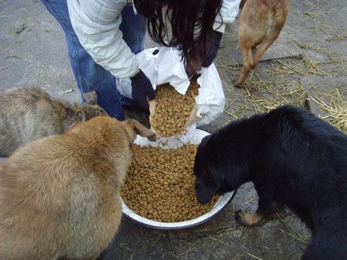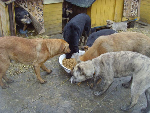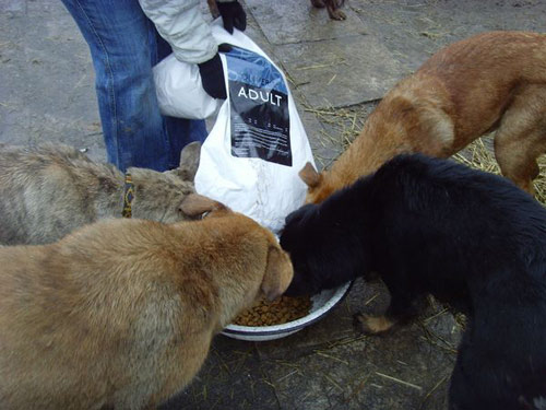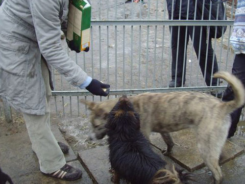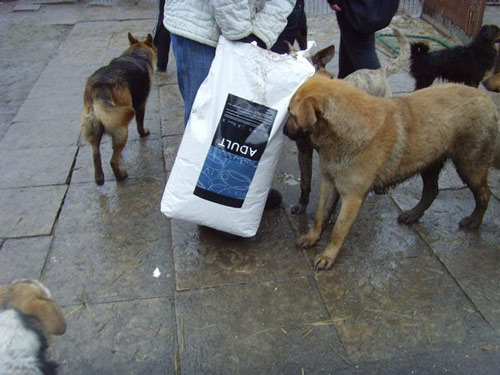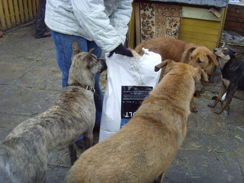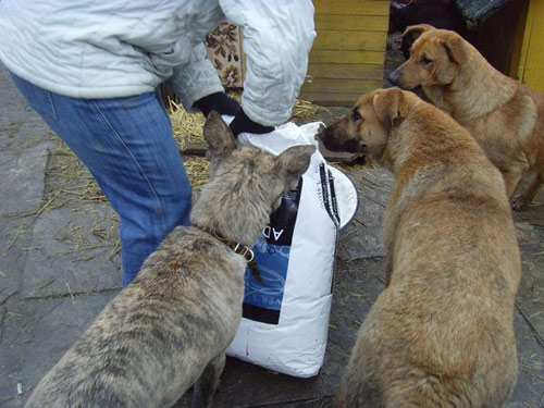 Gadehunde modtog tæt på 2 ton foder og blandet godt til de mange trængende hunde på det polske internat i Jozefow. Se billederne herunder fra det samlede resultat og til de første hunde der modtog lækkerierne på internatet.